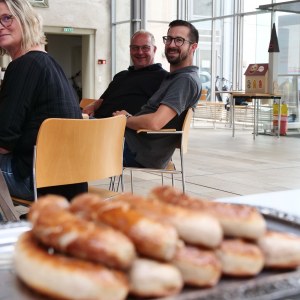 Die Johann-Mitarbeitenden und -Kirchenältesten ließen es sich am Abend des 8. Juli gut gehen: Beim traditionellen Abschluss vor den Sommerferien kamen Grillwürstchen und viele mitgebrachte Leckereien auf den Tisch. Das Sommerfest bot Gelegenheit für ausführliche Gespräche und zum besseren Kennenlernen für neu Dazugekommene. Bei einem kleinen Rätselspiel war das Team im ganzen Gemeindezentrum unterwegs, um Gegenstände wie eine kleine Holzblume zu finden und vom jeweiligen Fundstück einen Lösungsbuchstaben abzugeben. Diese wurden sortiert und ergaben das Wort „gemeinsam“, denn nur mit vielen Anderen zusammen ist das Gemeindeleben möglich und schön.