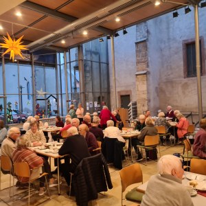 Konfis und Teamer gestalteten beim Jugendtreff ein Weihnachts-Mandala, und am 10. Dezember fand die Senioren-Weihnachtsfeier statt, bei der Pastorin Claudia Schreiber humorvolle Geschichten vorlas.